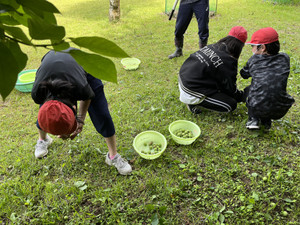 みんなでそばの実落としをしました。葉や茎,小石などを取り除き,そばの実だけになるように,ざるを使ったり,ふうふう大作戦(乾いた葉を息で吹き飛ばす)をしたり・・・みんなでがんばりました。